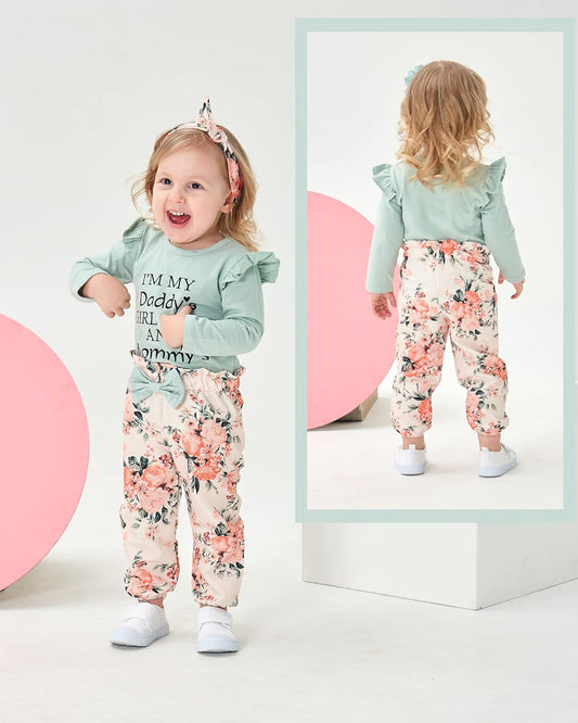 Newborn Infant Baby Girl Clothes Ruffle Romper Toddler Girl Floral Cotton Pant Sets Girls' Clothing Outfit